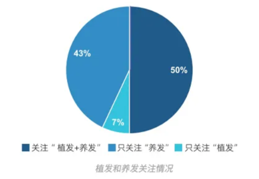 中科院《2023中国毛发健康生活方式蓝皮书》显示,关注毛发健康的群体逐渐低龄化,97%的90后和00后关注自身毛发健康,90后、00后年轻群体受毛发健康问题的困扰占比分别为74%和73%。同时,“植发+养发”成为新关注热点,50%的消费者同时关注“养发+植发”。
