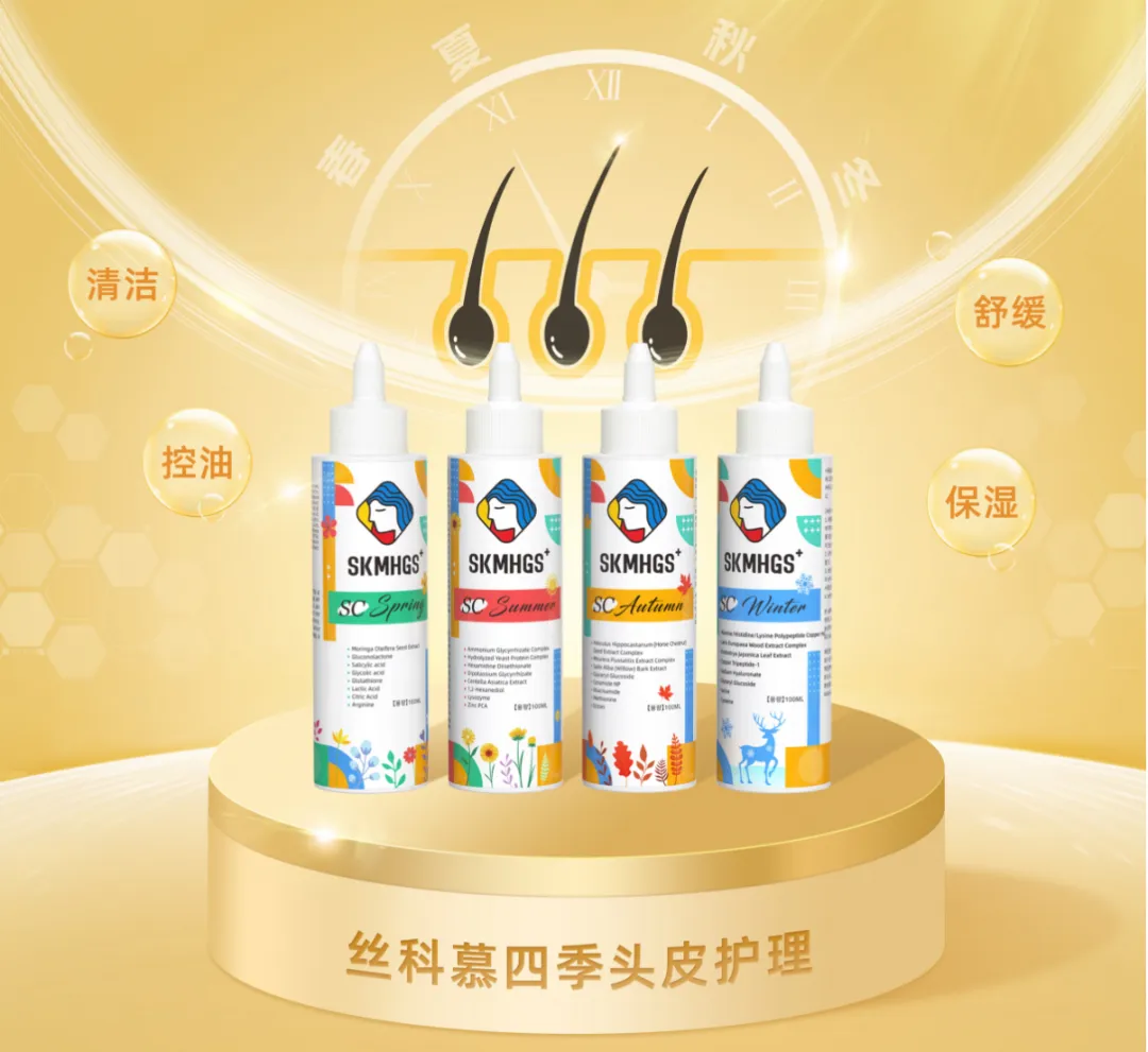 丝科慕四季头皮护理,定位于“头皮问题专家”。围绕【春】清洁、【夏】控油、【秋】舒缓、【冬】保湿四款单品,进行产品自由组合的头皮问题分型定制管理,改善头皮微生态环境,实现头皮菌群平衡、油脂平衡和代谢平衡,从根源上解决头皮问题,打造毛发健康生长环境,助力头皮问题护理新体验。