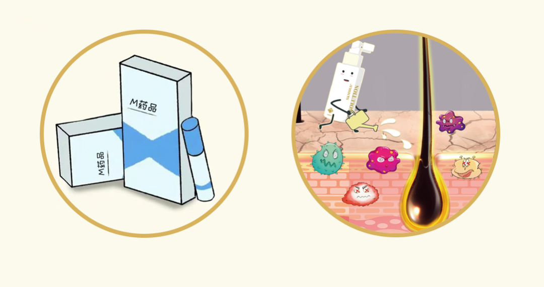 M药品侧重于强效干预,而丝科慕头皮滋养液更侧重于调理和滋养头皮的生态环境,如同为土地施肥改善土质。