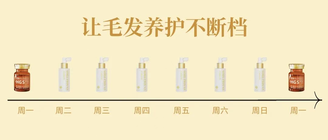 丝科慕毛发营养液作为专业的到院服务产品,每7天管理一次。