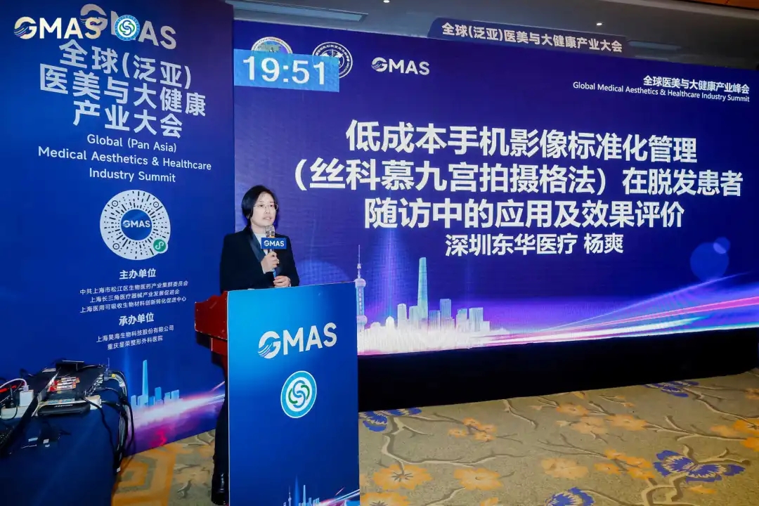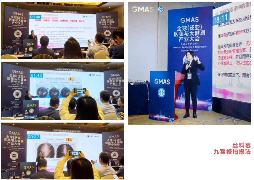 本次大会共设立十八个专题分会场,在其“毛发整形专题会场”,东华医疗团队杨爽女士分享的《低成本手机影像标准化管理(丝科慕九宫格法)在脱发患者随访中的应用及效果评价》学术课题,成为现场关注的焦点。